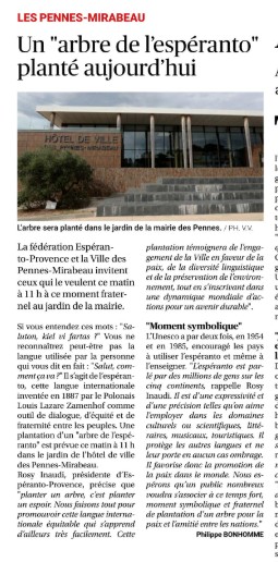 cet article en espéranto : 2026-11-15 - Plantado de Esperanto-arbo en les Pennes Mirabeau