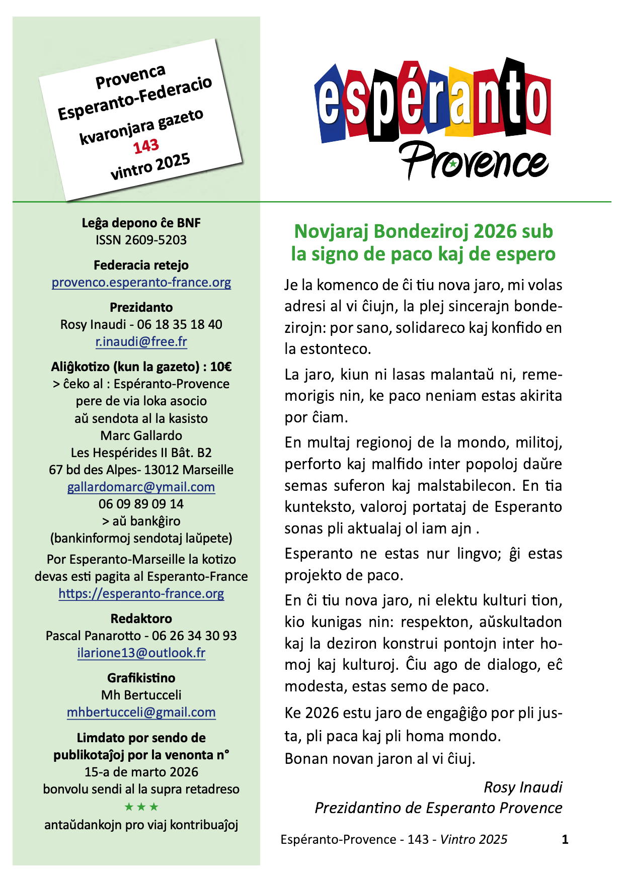 Aktuala numero de nia kvaronjara gazeto : 143 - vintro 2025